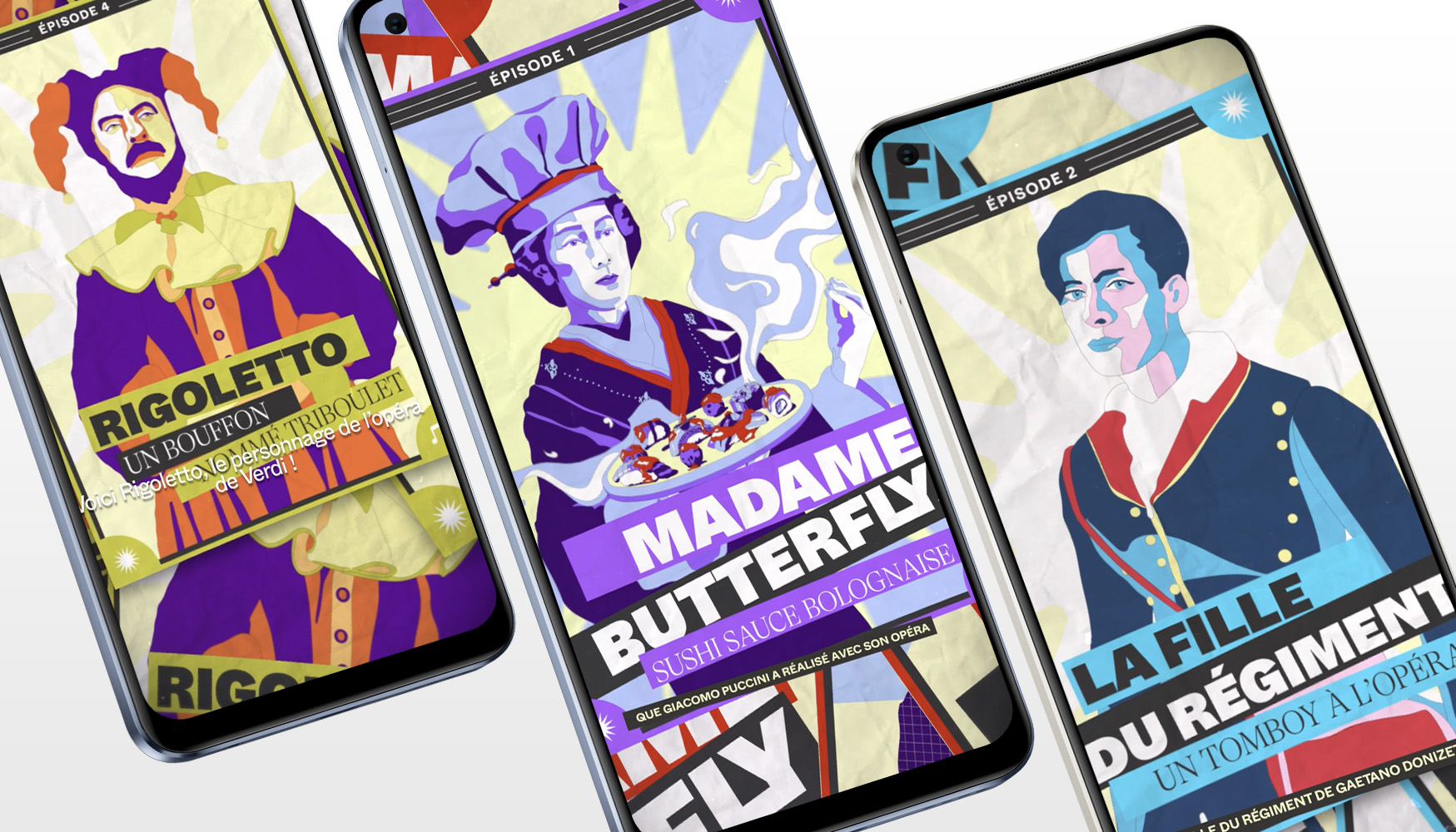 Design and animation for the web serie "À l'affiche" in partnership with Bastille's National Opera, counting eight episodes according to their programming. Team work with the one and only Théo Schornstein.