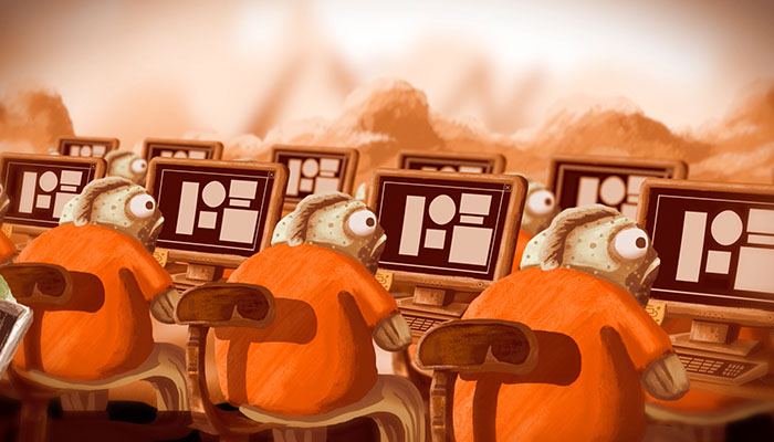 The goal was to make a trip that makes you «dazzle», around the world of Gobelins, l’école de l’image. Our concept is based on the idea of travel and meeting with the unknown. The unknown are the courses offered by the school on its various campuses, grouped into seven departments. We choose to use the colors of the departments for people to identify what they came to see more easily. The students already present in the school are portrayed in a caricatural way, to erase the received idea of their inaccessibility, and to show those who would like to join the school that they are like them, strange and funny animals.
