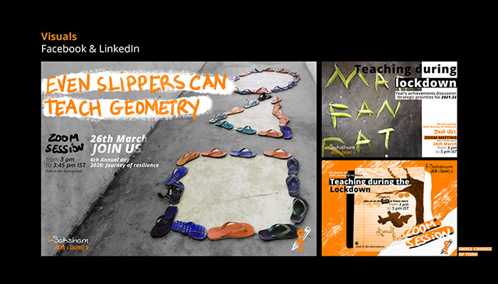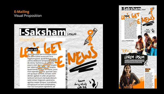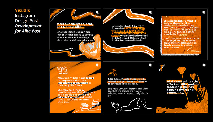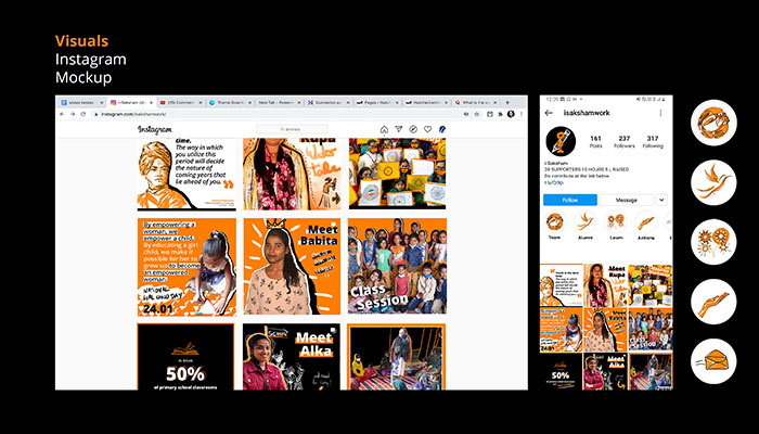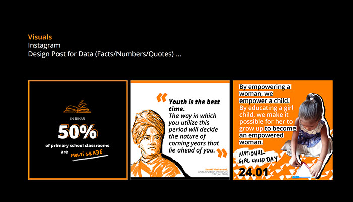 Arrived in the second part of the civic service, I created a second graphic chart for the partnership association of Eurasia in India, I-Saksham Education and Learning Foundation. The exercise was all the more interesting as it introduced me to a culture that I had never known before. I learned there in terms of language in the broad sense, communication, image and interlocutors. I made a series of visuals for digital communication on social networks. The association acts in the field of education for all, and I wished to make a childish wink the graphic style I used.